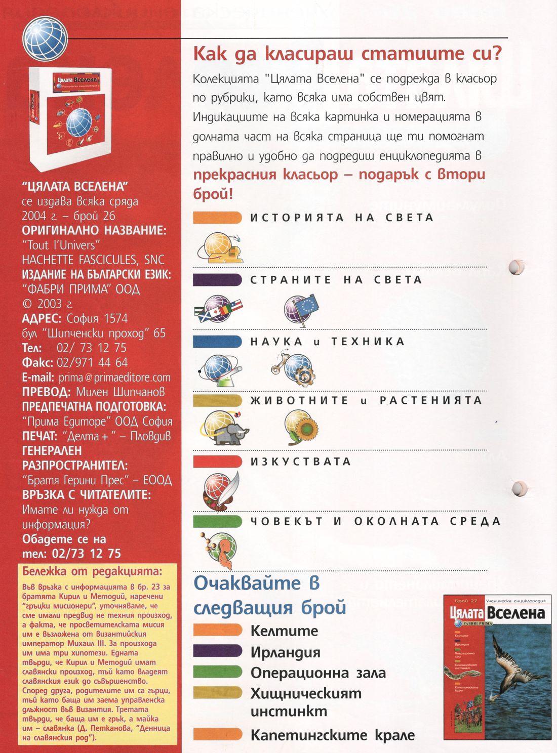 Цялата Вселена — ученическа енциклопедия, брой 26