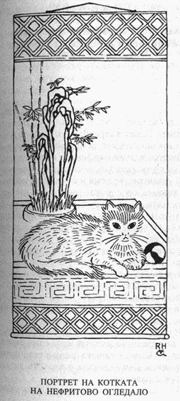 — Това е последната рисунка на Нефритово Огледало — продължи Сюн. — Направена е в неговата стая, следобеда на самия ден, когато бе отведен на Небето. След това котката отказа да приема храна и след една седмица умря. А някои хора твърдят, че тези животни били неспособни да се привързват към господарите си! Бих ви посъветвал да видите и статуите на даоистката Троица в главния параклис. Те са високи над десет стъпки и са дело на много известен скулптор. Сега ви оставям, но се надявам да ви пожелая добър път утре сутринта, преди да тръгнете.