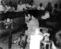 Изображение 82: Високопоставени ръководители на американски петролен концерн наблюдават как чрез мисълта си момичето отваря цветна пъпка (1992). С телекинеза другото момиченце кара таблетка да „премине“ стъклената стена на шише.