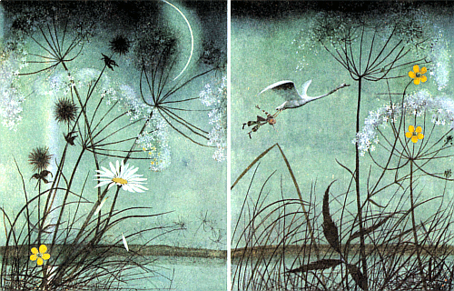— Го-го — гъгнеше лебедът, като се събуждаше, — що за неприлични шеги! Оставете лапите ми на мира!