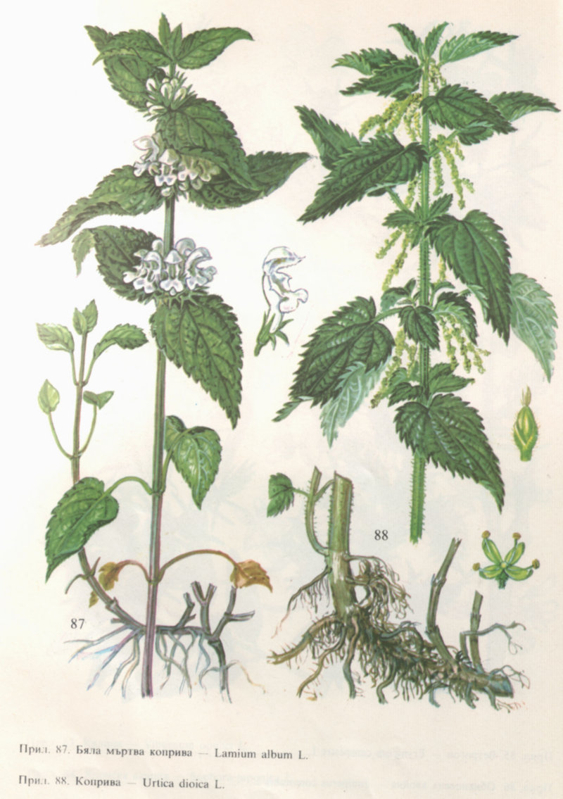 Описание. Многогодишно тревисто растение (прил. 87) с пълзящо хоризонтално коренище. Стъблата са 30 до 60 см високи, приповдигащи се или изправени, четириръбести, кухи, прости, по-рядко разклонени. Листата са срещуположни, сърцевидно яйцевидни, 3–8 см дълги, на върха заостргни, по края назъбени. Цветовете са бели, разположени в прешлени в пазвите на горните листа. Чашката е звънчевидна, с 5 жилки и 5 почти еднакви зъбчета. Венчето е дьуустно, 2–2,5 см дълго. Тичинките са 4, разположени под горната устна. Плодът се разпада на 4 орехчета. Цъфти април—юли.