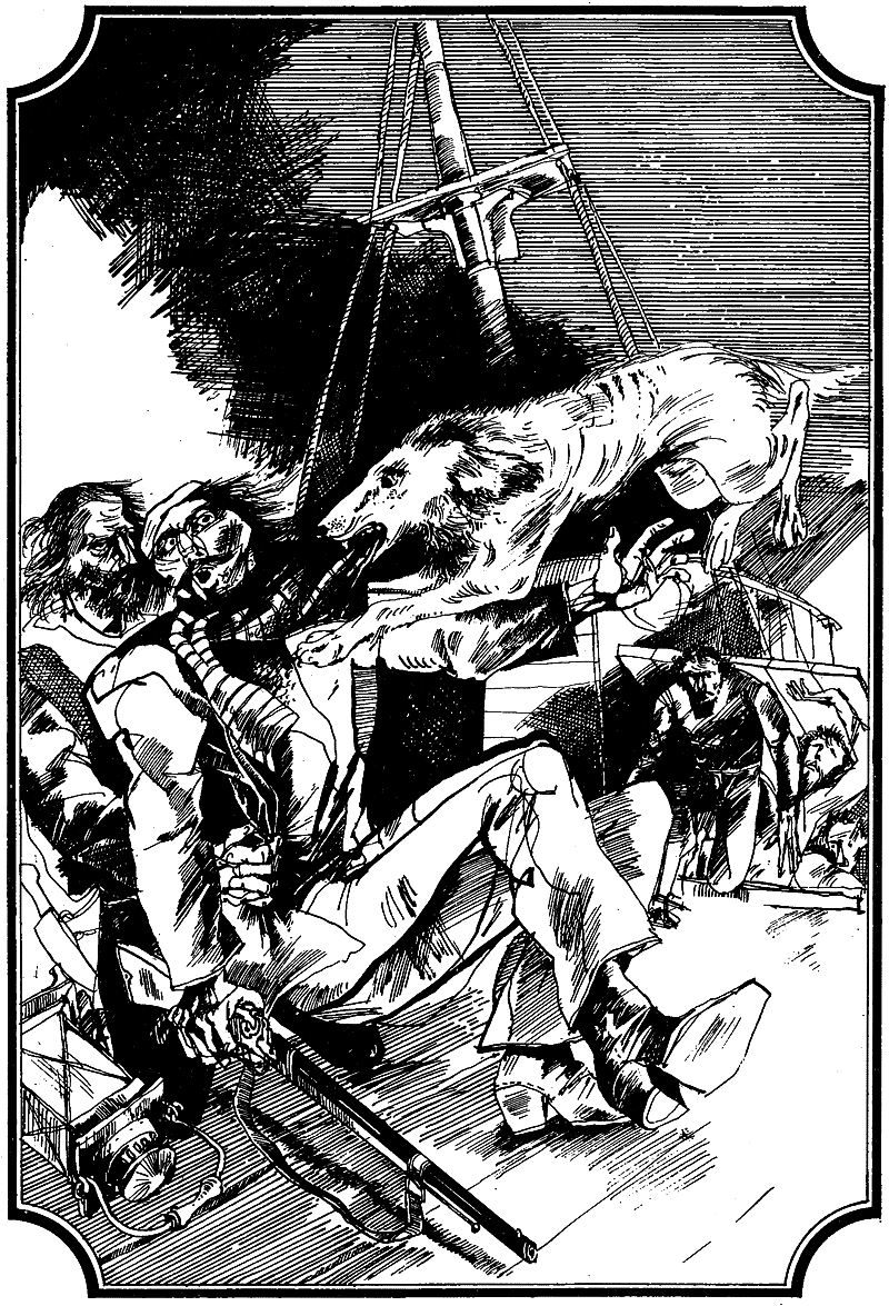 Вълчо, който до този момент бе обърнал внимание на шума дотолкова, че подскочи при първия изстрел и изтича бързо от единия край на лодката до другия, за да открие убития дивеч (та нали господарят му понякога бе стрелял от борда по диви патици и други водни птици), едва-що съзрял борбата и чул задавения от гняв глас на своя господар, той скочи на врата на кормчията, който му беше и без това омразен, и го принуди да пусне карабината. Еджуърт сграбчи престъпника през кръста и тримата се търколиха на палубата.