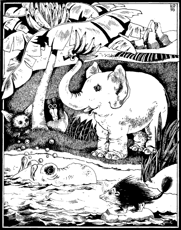 И тогава Слончето усети, че започва да се хлъзга към водата, и каза през носа си, който беше станал вече почти метър и половина дълъг: