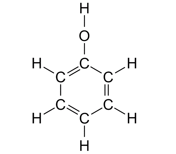 Молекулата на фенола се състои от бензолно ядро, към което е свързана една хидроксилна група по следния начин: