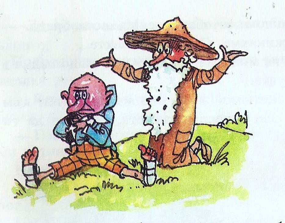 — Стига най-после! — изпъшка Мъхеста брада. — Толкова дълго беше на дървото с главата надолу, че и мислите ти се обърнаха наопаки!