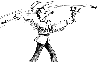 На ужасения Джими не му оставаше нищо друго, освен да направи втори опит. Той застана в позиция за хвърляне. В шатрата отново настана тишина. Хвърлячът на ножове пое дълбоко въздух три пъти и хвърли. И… хвърленият нож отново полетя обратно към него. Този път обаче му отнесе каубойската шапка от главата.