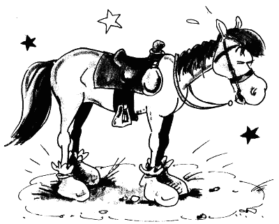 Тя ги сгъна като торбички, напълни ги с прерийна трева и ги върза за копитата на коня. Така пред тях застана един кон с пантофи.