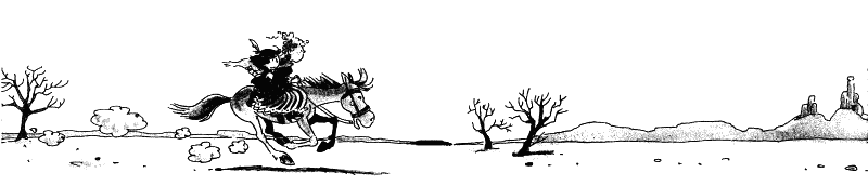 Зили и Лили се бяха запътили на запад, преследвайки горящото червено кълбо пред тях. Копитата на коня чаткаха по твърдата, суха почва на широката равнина. Само тук-там се виждаше по някое и друго дърво, което хвърляше сянка и правеше безкрайната далечина малко по-приветлива. Постепенно планината, която се сливаше с хоризонта започна да се приближава.