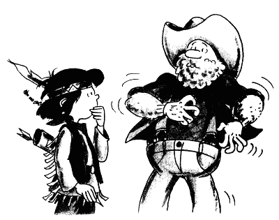 — Тези неща на нашия език ги наричаме „костюми“ и „перуки“. Те много приличат на вашите дрехи. Взех ги от едни момчета в Мексико, които успяха и нас да измамят. Преди да избягат от затвора ние ги наричахме Трите торнада. По-добре щеше да е да ги наричаме Трите смърдящи ботуша! Този мъж там на кола е един от тях!