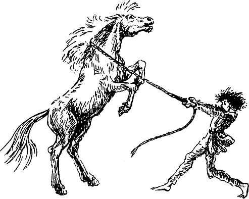 Тя свали кожения си ремък. Бирк също вече се беше сдобил с такъв и те се скриха — всеки готов със своята примка, зад един камък близо до поляната, където дивите коне идваха да пасат.