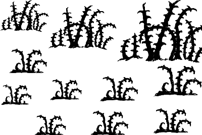 Така си и беше. Земята беше покрита с бодливи храсти. Те ставаха все по-големи и по-големи. Сезам се опита да запази самообладание.