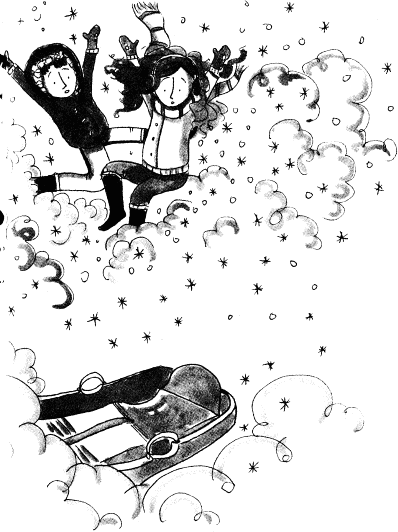 Шейната се плъзна по хлъзгавата повърхност по-бързо от всякога. Момичетата изпискаха, вятърът свиреше в ушите им, снегът в лицата щипеше бузите им. Носеха се все по-бързо и по-бързо, докато накрая — пуф! Тупнаха в една пряспа, която незнайно как се бе появила от нищото. Тя се пръсна на милион кристалчета, които заблестяха като диаманти на слънцето. За изненада на момичетата снегът в пряспата не беше нито студен, нито мокър. Чувстваха се така, сякаш падат във валмо памук. Сезам усети как огърлицата я гъделичка, а в следващия миг двете с Мади се завъртяха и пропаднаха във водовъртеж от снежинки. Сезам ахна. Беше напълно сигурна, че пътуват към Каризма.