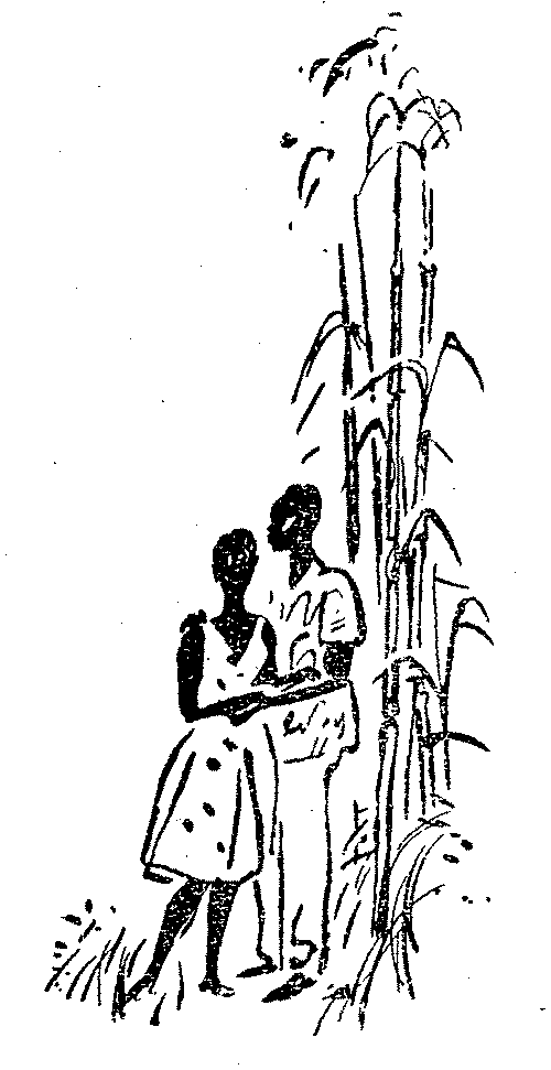Но изведнъж се спря и оттам направи едно движение, което означаваше съучастничество и сбогуване. Чу блеенето на своето стадо (макар че беше напълнил коритото с вода) и му се стори, сякаш беше се покатерил на манговото дърво, което расте високо над къщата, и оттам вижда безредно разхвърляните четвъртити ламаринени покриви, където всеки ден слънцето играе самотната си игра и никога не я спечелва. И той потръпна от мъката на всички онези, които тихо ронят сълзи по изгубено щастие.