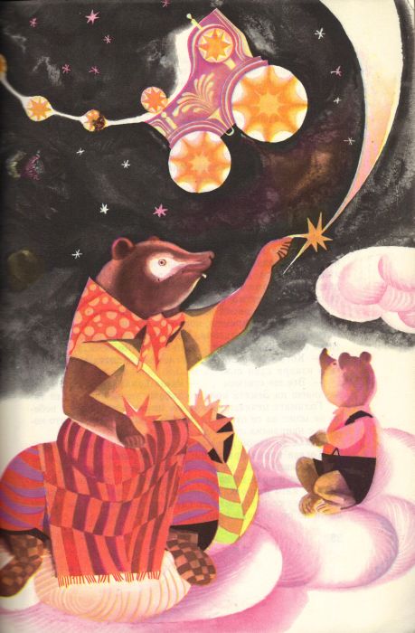 — Трябва да си уловим седем звезди — каза Голямата рунтава мечка. — Ако си уловим седем звезди, ще си направим кола. От седем звезди става много хубава и удобна кола.