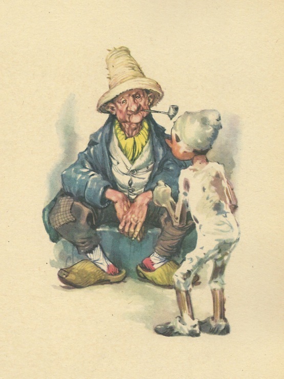 — Не обръщай внимание, старче, на доброто, което казах за Пинокио, защото го познавам много добре и мога и аз да те уверя, че наистина е лошо момче, непослушник и ленивец, който вместо да ходи на училище, скита с другарите си из улиците!