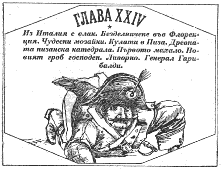 Из Италия с влак. Безделничене във Флоренция. Чудесни мозайки. Кулата в Пиза. Древната пизанска катедрала. Първото махало. Новият гроб господен. Ливорно. Генерал Гарибалди.