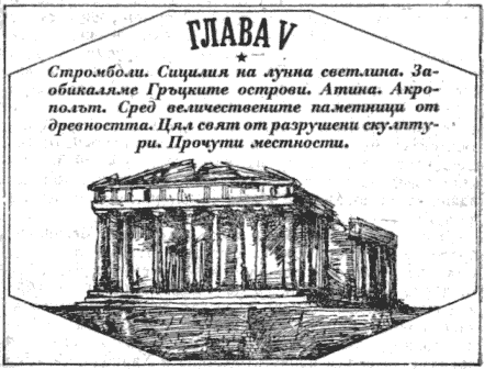 Стромболи. Сицилия на лунна светлина. Заобикаляме Гръцките острови. Атина. Акрополът. Сред величествените паметници от древността. Цял свят от разрушени скулптури. Прочути местности.