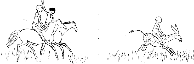 Всички пуснахме конете в бяг. Отначало Дорчо бягаше тръс, но щом усети, че другите коне са наблизо, загалопира и избяга напред. Парчета пръст хвърчаха около мене. С притиснати колене и разперени ръце аз виках от радост. Тържествувах. Бях изпреварил всички.