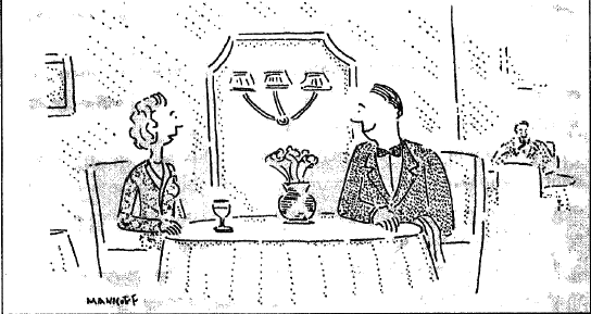 | 5. | Когато понечи да плати вечерята, скъсват кредитната му карта, на което той реагира с „По дяволите, пак ли“. |