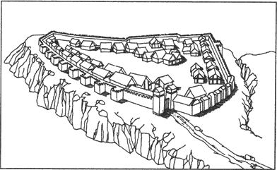 Най-често те са разделени на отделни укрепени квартали, всеки от които е с различно предназначение (седалище на владетеля, светилище, занаятчийски квартал и т.н.) — (рис. 5).