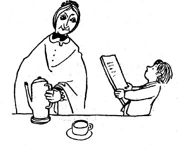 Тогава всеки от нас взе подмишница своята дъска, сложихме шапките си за преминаването през улицата, казахме учтиво довиждане на Кожената Лизбет и отидохме отсреща в къщата, където Горна баба беше сложила масата в гостната по случай моето посещение.