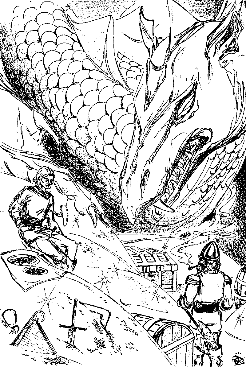Върху купчина златни монети и скъпоценни камъни с големината на човешки юмрук седеше Томас и ядеше нещо, което приличаше на риба. Срещу него се беше привела фигура, която накара Долган да не повярва на очите си.