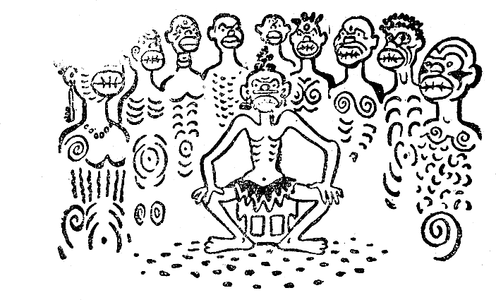 Биримаратаоа, великият вожд, седеше на своя трон сред хилещите се статуи на боговете, набучени върху изкривени колове. Клапзубовци стояха пред него, заобиколени от три реда диви воини, които ги пазеха, да не би да избягат.