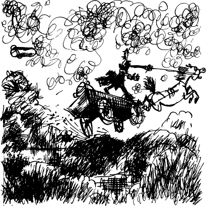 Конят беше по-умен от мотоциклет, дори и от милиционерски. Конят знаеше дупките наизуст, чувстваше накъде да направи крачка. Впрочем каруцата понякога подскачаше и с четирите си колела, а от време на време и плуваше като гемия.