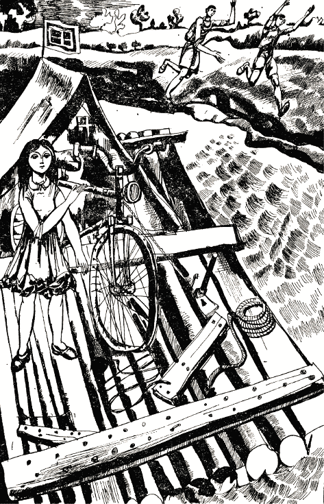 Изтичах на моста и сграбчих велосипеда, който остана захвърлен там. После се понесох по брега. Но салът имаше прекалено голяма преднина.