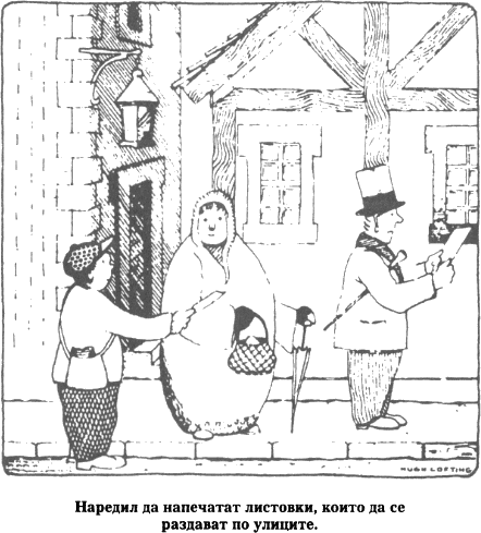 — Освен чрез камшика — ухапал го Джон Дулитъл. — Защо не мога да те сложа на неговото място и да те накарам трийсет и пет години да работиш за Бепо срещу сено и вода, а за благодарност — бой и немара. Добре, ще му предам молбата ти, да видим какво ще отговори. Но запомни, решаваща е неговата дума. Откаже ли да изиграе дори едно представление, ще си изпълниш обещанието: хубав дом и сочно пасбище, където да пасе до края на живота си. Ах, колко ми се иска да каже „не“!