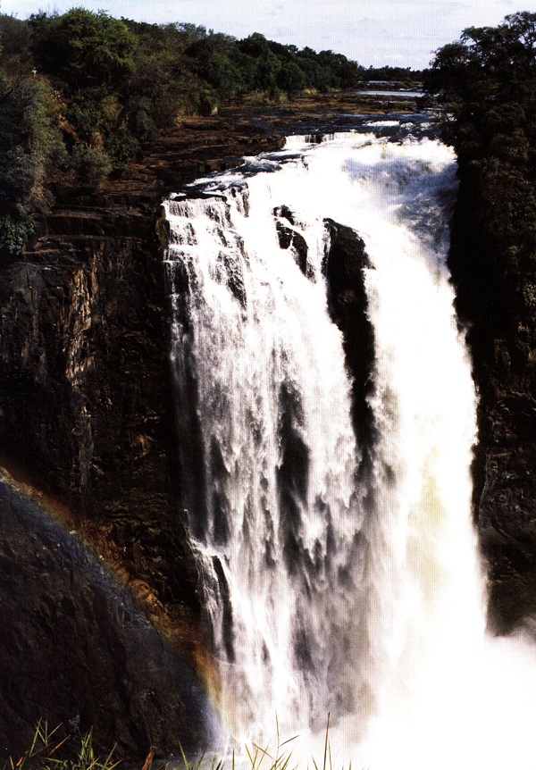 Реката прорязва твърдото базалтово плато на Замбия, а водопадът Виктория се спуска по отвесни насечени скали.