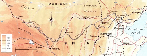 Великата китайска стена днес изглежда почти същата, каквато я е видял през 1783 г. лорд Макартни, ръководител на първата британска (и западноевропейска) дипломатическа мисия в Китай: укрепени стени, които „се издигат по билата на хълмовете и върховете на най-високите планини, спускат се в най-дълбоките долини, прехвърлят реките“. Построена като преграда между цивилизованите земи на Китай на юг и откритите степи на север, в голямата си част стената минава през планинска територия и използва природните дадености, за да подсили максимално своята отбранителна мощ и величието си. Най-западният й участък достига пустинята Гоби — песъчлив пуст регион с почти лунен пейзаж, от който гарнизонните войски някога се бояли много повече, отколкото от нашествието на варварите; на изток стената свършва сред фермите по гъстонаселеното крайбрежие на Жълто море.