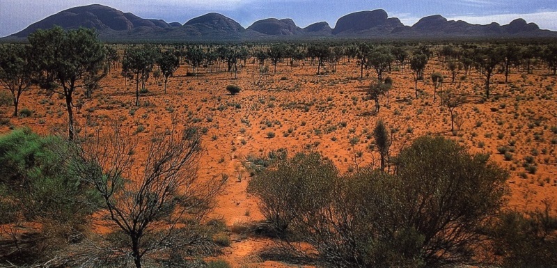 Чудовищните голи глави на Ката Джута (Олгите) в Националния парк Улуру-Ката Джута, разположен на запад от Улуру. Между скалните върхове се намира призрачната Долина на ветровете.