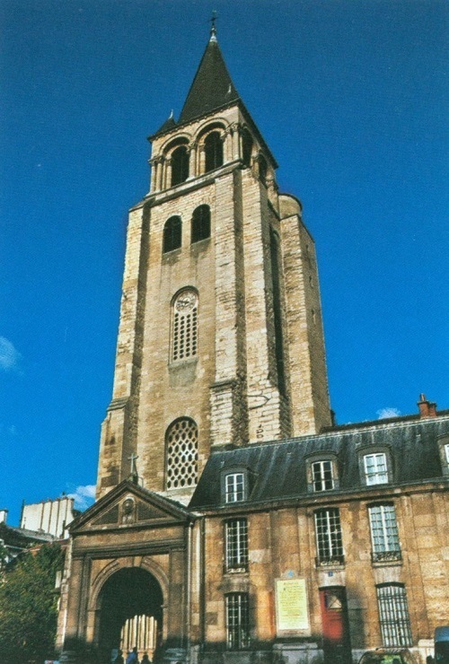 Крал Хилдебер от династията на Меровингите се вслушва в съвета на Св. Жермен, който не след дълго става епископ на Париж, и през 543 г. възлага строежа на базилика и манастир в прослава на Св. Венсан (светеца покровител на лозарите и винарите) и на Св. Кръст. Базиликата с великолепни мозайки и покрив от позлатен бронз е наречена „Св. Жермен Позлатения“ (St.-Germain le Dore). Това е една от най-престижните сгради в кралството на франките и служи за гробница на Меровингите.