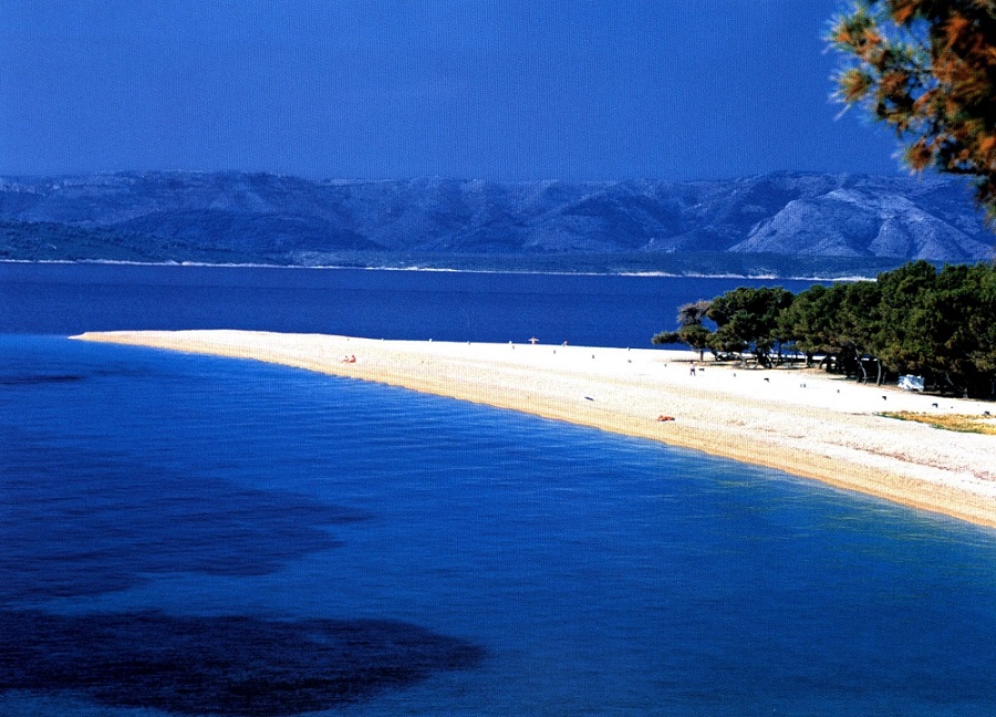 Плажът Златни Рат на о. Брач мени облика си заради ветровете, приливите и отливите, но си остава все така заострен.
