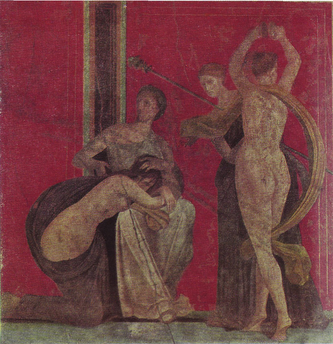 И сега, както някога, когато били обитавани и пълни с живот, стояли къщите, храмът на Изида, амфитеатърът. В помещенията на писарите лежали восъчните плочки, в библиотеката — папирусовите свитъци, в работилницата — занаятчийските инструменти, в баните — стригилите. По масите в гостилницата още се търкаляли съдове и набързо хвърлените от последния клиент пари. По стените на кръчмата намерили стихове, писани от въздишащи или отчаяни влюбени, но стените на вилите — фрески, за които Венути пише, че били „много по-красиви от творбите на Рафаел“ (вж. ил. 4 — 9).