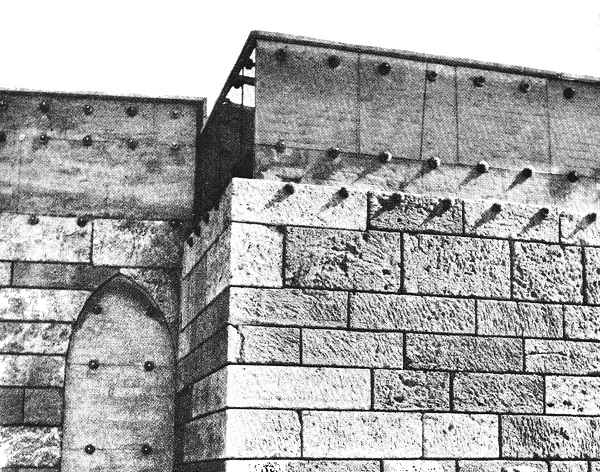 Ил.65 крепостната стена на Гела. Горната част на стената, зидана от непечени тухли, е отчасти запазена над каменния цокъл. За да се съхранят тези крехки останки, са направени защитен кофраж и покрив от пластична материя. Заслужава внимание тайната врата (потерна) с островръх свод, подобна на вратите на обсадения град върху фриза от Триса (вж. ил. 61–62).