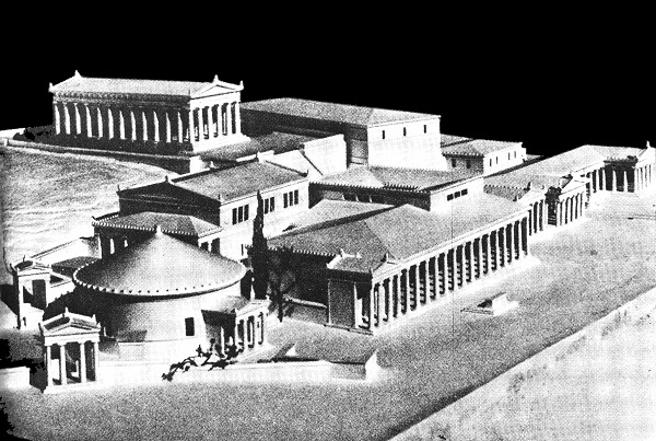 Ако държавата се издържала от селския труд, то в града се извършвали всички важни дела, засягащи както частните лица, така и самата държава. Ето защо още от архаичната епоха, въпреки силната привързаност към природата, която винаги е била характерна за гърците, гръцката цивилизация е преди всичко градска; тя е създадена от хора, живеещи в големи групи, и поставя на първо място обществените отношения. Как е изглеждал гръцкият град през архаичната и класическата епоха? Колкото и скромен да е бил, той все пак представлявал столица на държава: в него били съсредоточени главните учреждения и служби, които оправдават съществуването на държавата, и там им били предоставени подходящи сгради. Там се намирали светилищата за обществените култове, укрепленията, охраняващи гражданите от външни нападения (било акропол*, приспособен като вътрешно отбранително укрепление, или крепостна стена, опасваща целия град, или и двете едновременно), голям площад или агора*, служещ за пазар, където ставали търговските размени, и за място на политически събрания, чешми за снабдяване с вода, необходима за живота, и накрая специалните сгради за различните административни и съдебни органи. Около тези обществени сгради, повечето събрани на акропола или около агората, се развивала уличната мрежа в безпорядък, който преди V в. свидетелствува за пълно отсъствие на какъвто и да било градоустройствен план. Едва след Гръко-персийските войни и по образец на направеното за възстановяването на Милет (разрушен от персите през 494 г.) възникват първите опити за урбанизация с въвеждането на правоъгълния план, наречен и „шахматен“. Решаващата роля в това развитие се приписва на архитекта Хиподам* от Милет, който изработил плана на Пирея по искане на Темистокъл и участвувал в изграждането на Турии* през (444–443 г.) Аристотел в своята „Политика“ (1267b) го представя като човек, който се занимавал не само с архитектура, а и с политическа философия, и е известно, че тенденцията да се рационализира градостроителството се дължи на течението за математическо мислене, създадено от Талес* от Милет и развито от Анаксимандър* и Анаксимен*, откъдето идва названието „Милетска школа“, дадено й с право. Обаче тези нововъведения били възприети само в новостроящите се градове и не променили облика на старите.