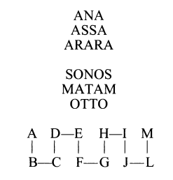 — Четат се по един и същи начин отляво надясно и отдясно наляво, означават едно и също. — Вгледа се съсредоточено в буквите. — Вижте. Първата дума е ana, която се чете по същия начин и в едната, и в другата посока. Assa е същият случай. И arara също. И така нататък.