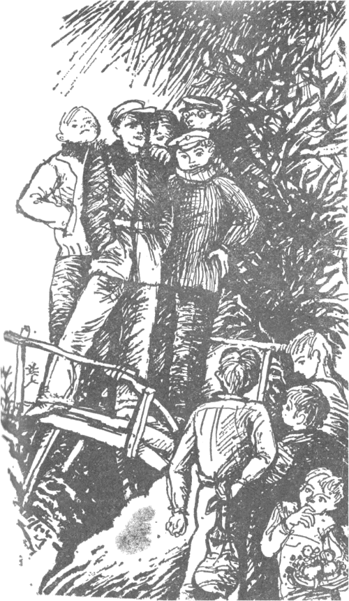 Доволни, радостни, че и тая година не пропуснахме да направим своята редовна баберка, вървяхме вкупом и оживено разговаряхме. От ситост ли, от що ли — не знам, но ние забравихме задълженията си и вече не се пазехме, не се озъртахме, за да не налети върху нас пъдарят, и продължавахме да се препираме високо за туй-онуй и дори да се караме, когато някой от нас разказваше врели-некипели истории, с които не бяхме съгласни. Най-шумен и бъбрив от всички ни беше Борис Гудата. Той не даваше никому думата и непрекъснато се хвалеше със своите подвизи, а Данчи Пенеса го предизвикваше с честите си прекъсвания, та Борис още повече пламваше и се заканваше да го набие. Увлечени, ние не усетихме кога стигнахме долу, до дървеното мостче под воденицата, и вече се готвехме да преминем оттатък, когато изведнъж пред нас изникна друга „банда“ от момчета.