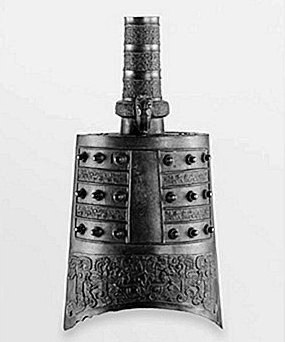 Бронзова камбана. Тази камбана с издатини или чучури, декоративни карета и надписи е типична за средния стил Чжъу (9 в. пр.Хр.). Тя била окачвана за пръстена в основата на стъблото и бита с дървен чук. Камбаната има извит отвор, вместо да е равна отдолу. (На снимката тя е поставена върху възглавница.)