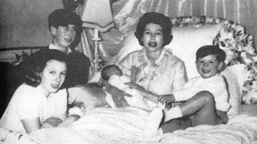 Из личния албум на кралицата: Нейно величество в леглото с децата си Ан (на тринадесет години), Чарлс (на петнадесет) и Андрю (на четири) след раждането на последното й дете Едуард през 1964 година. Тази снимка се появява в Англия само веднъж. След поместването й в „Дейли експрес“ Дворецът обявява: „Тъй като снимките са от строго лично естество, кралицата, естествено, би предпочела да не се отпечатват. Затова не можем да одобрим публикуването им в бъдеще“.