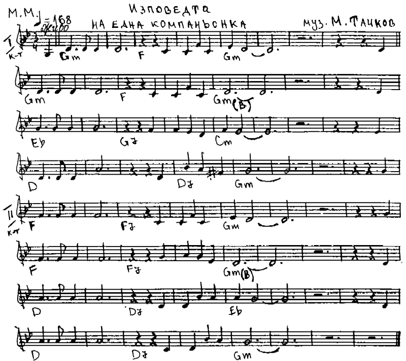 [По желание — модулация след VI и след X куплет; III и IV, IX и X куплети — като речитатив.]