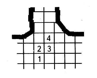 Цифрите върху тази тактическа карта показват къде стоят Приключенците в началото на сражението. Буквите „Ч“ указват първоначалното местоположение на чудовищата.